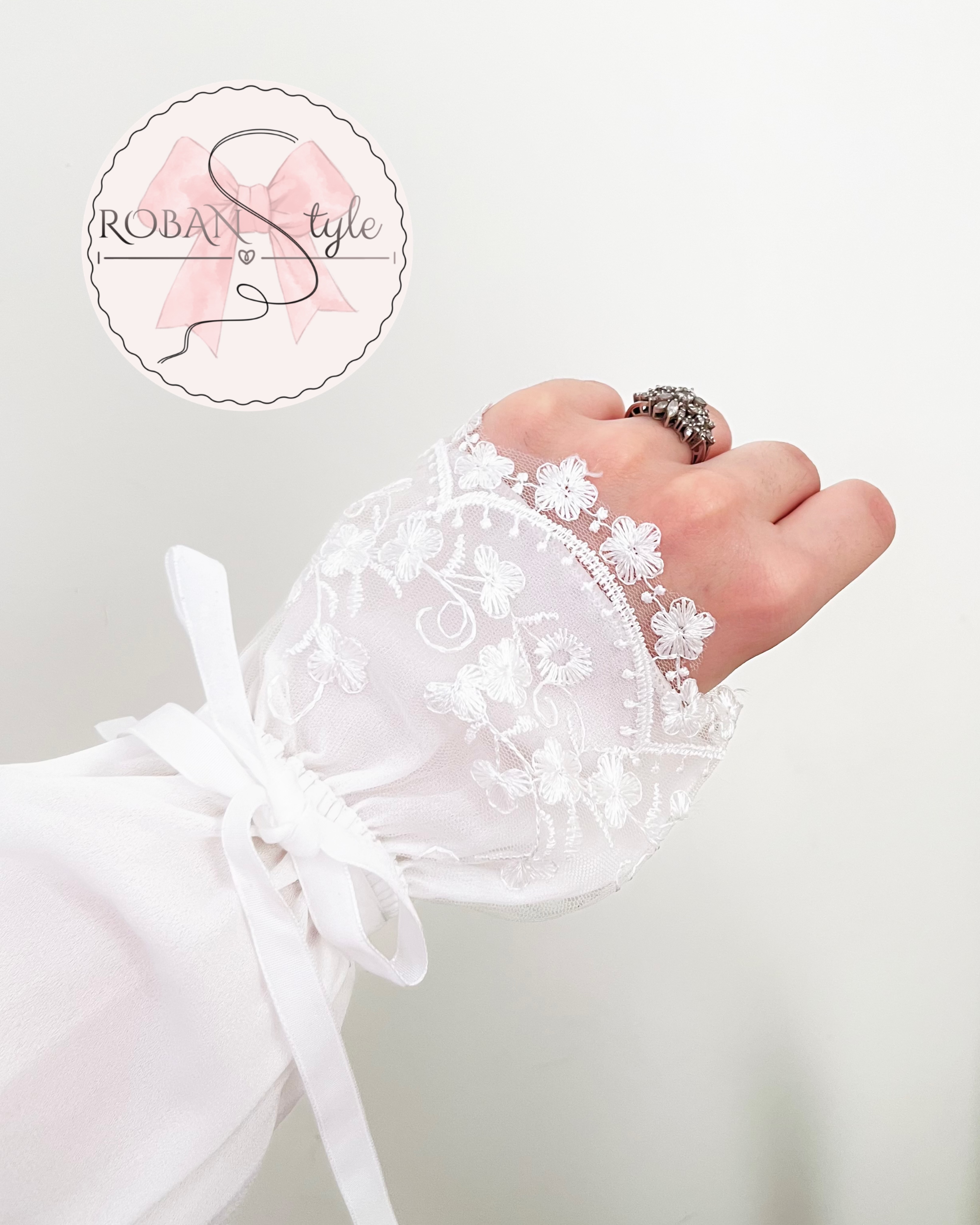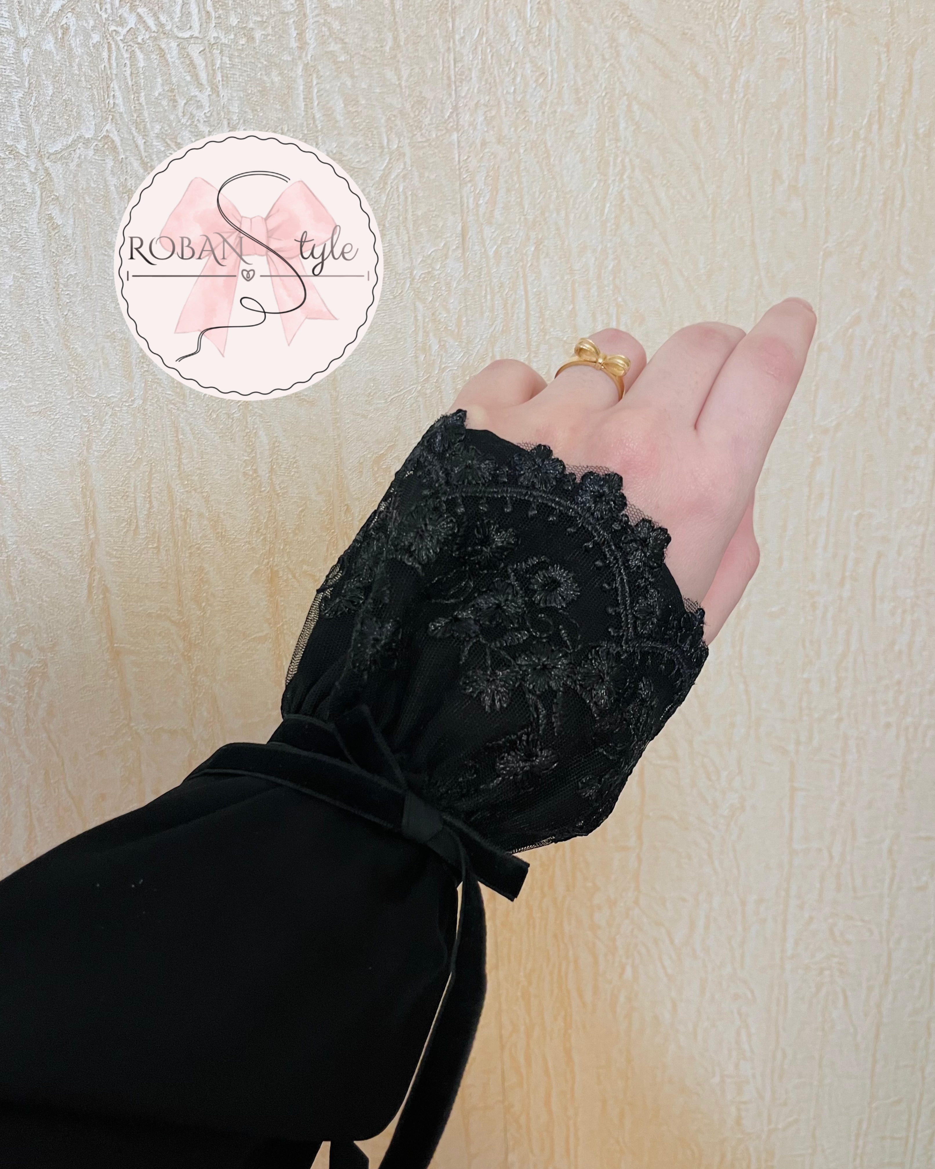 نوار مخمل جهت فیکس کردن محل قرار گرفتن چین روی دستتون و تکون نخوردن ساق دست (روی دست میتونید پاپیون بزنید که شکل استین شومیز داشته باشه)