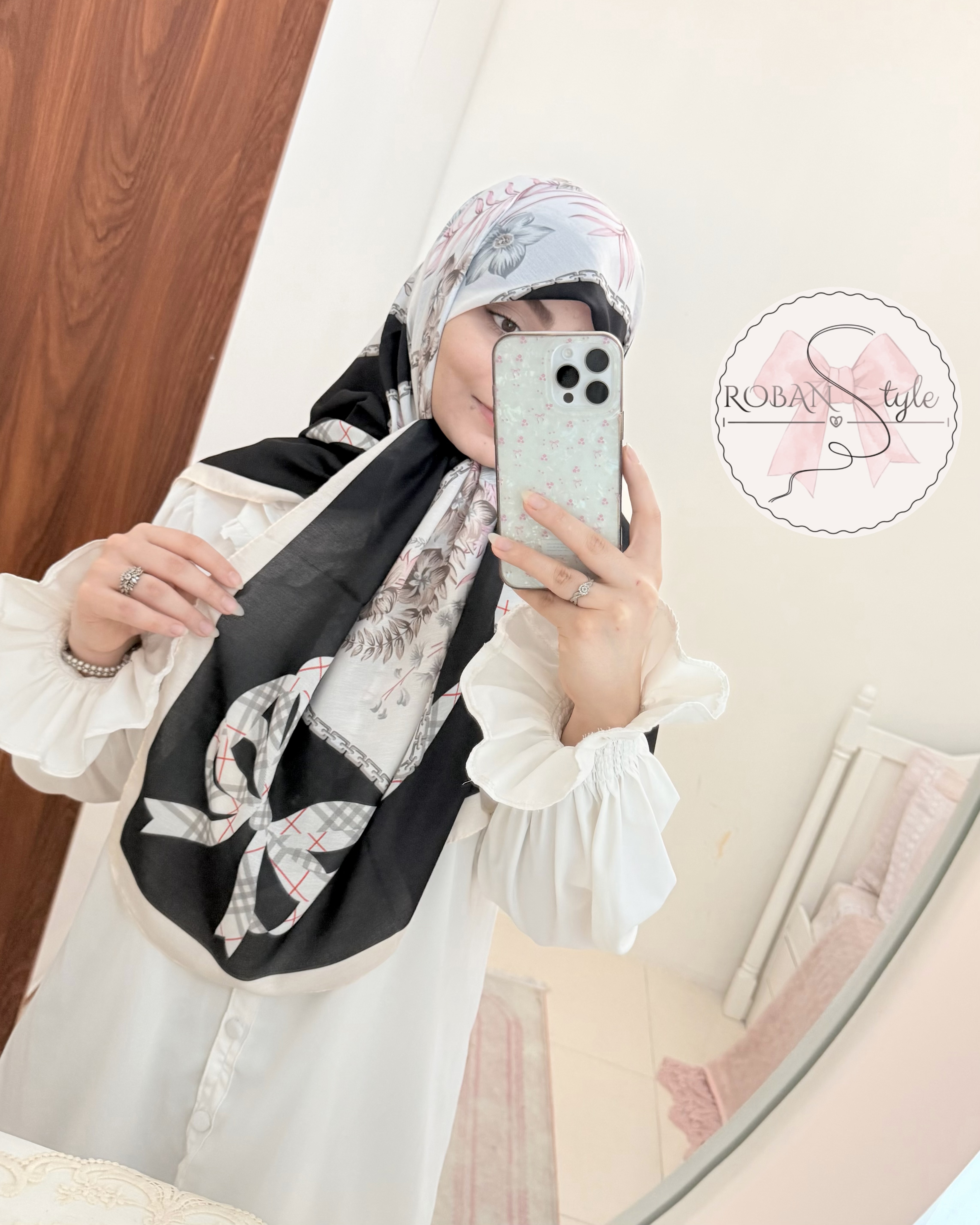 روسری سیا اسکارف پاپیونی پایه کار نخ پنبه داره تولید داخلی قواره حدود۱۲۵ پشتش چاپ کمرنگی از طرح خودش داره ایستایی عالی حتی بدون گیره... جلوش فرم دلخواه میگیره چهارفصله✔️