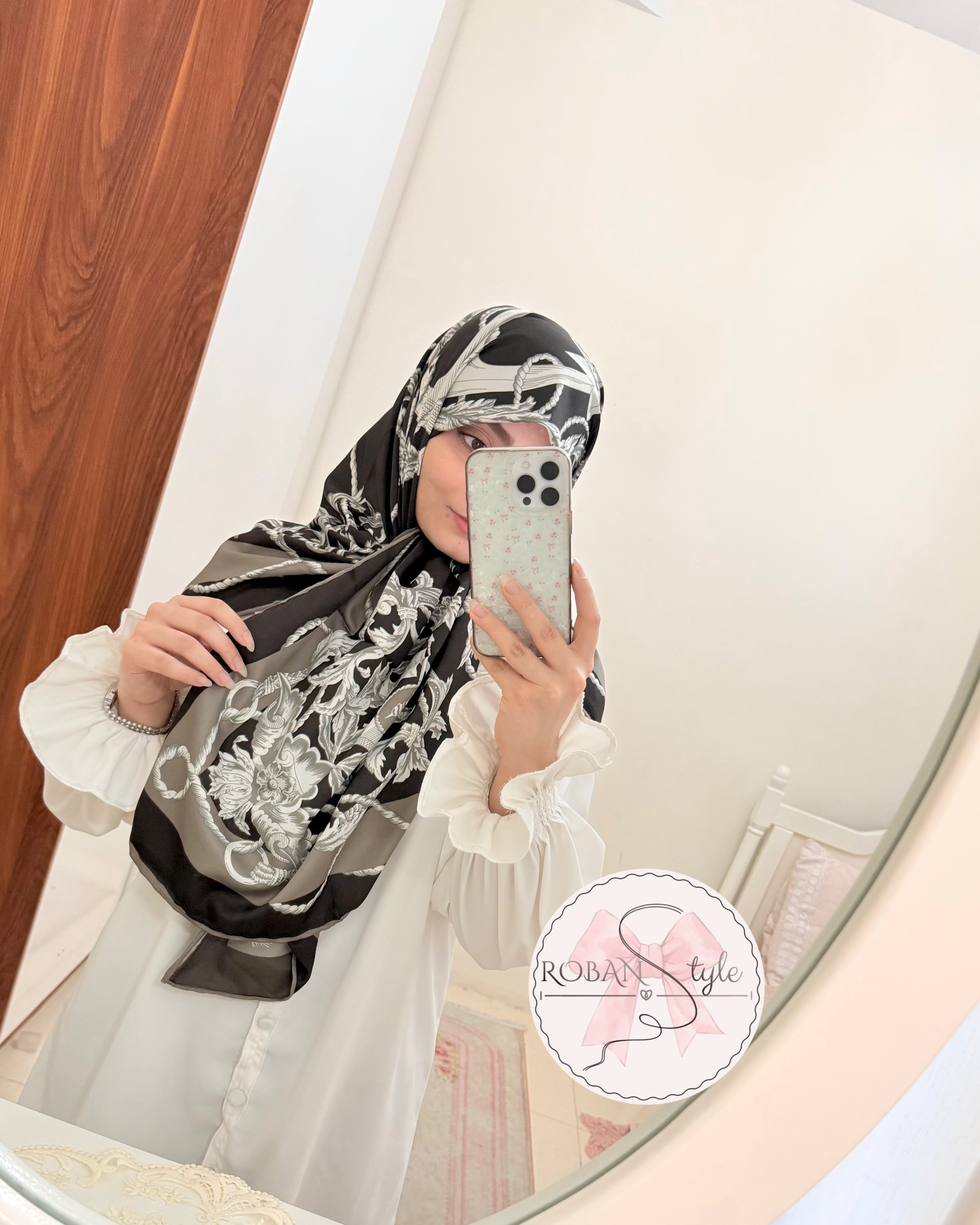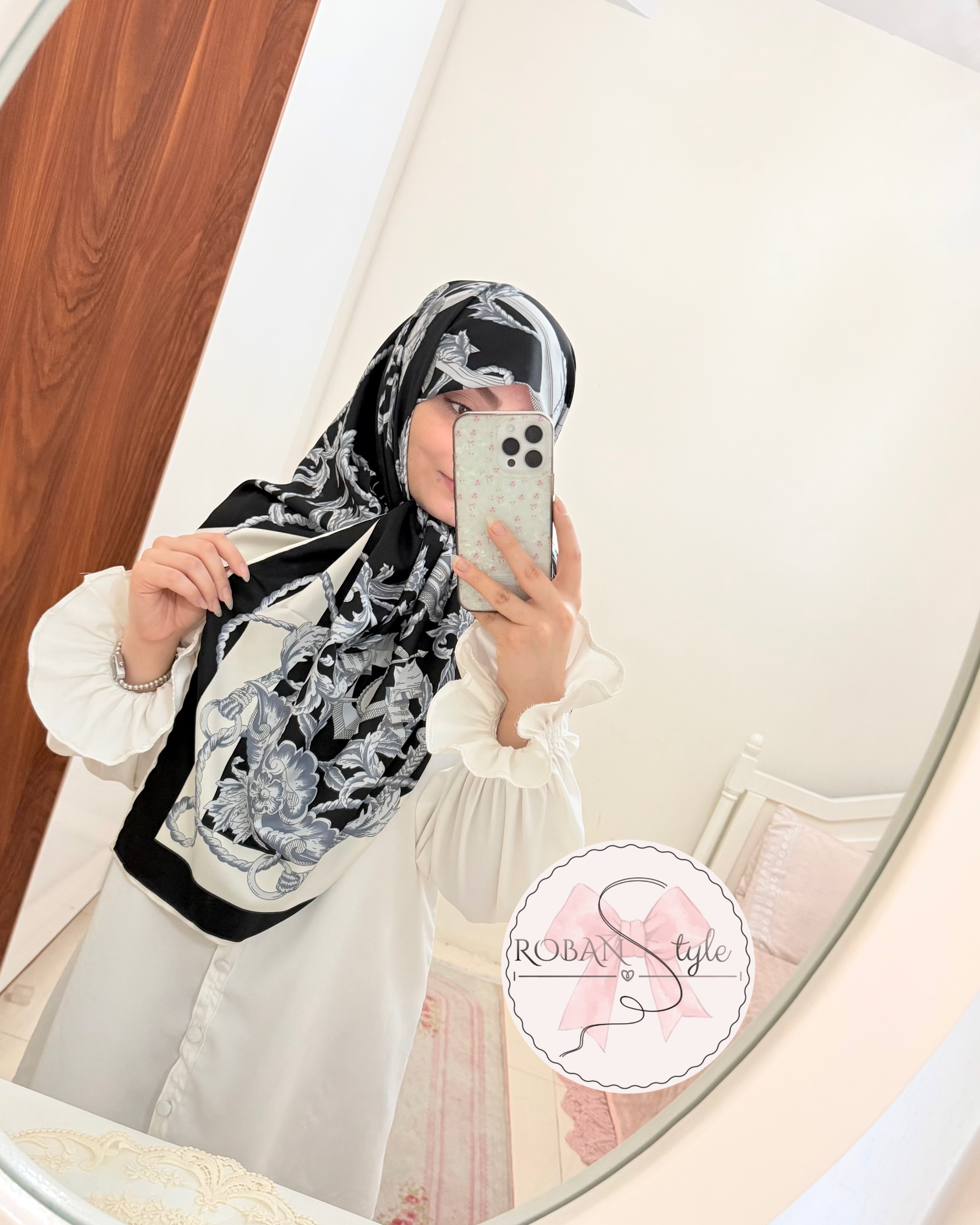 *باتوجه به ژورنالی بودن عکس ها یک درجه تفاوت در نظر بگیرین* ابریشم توییل کجراه دور دستدوز پشت سفید نیس قواره۱۳۵ ایستایی عالی مخصا اگر با گره یا گیره فیکس شه